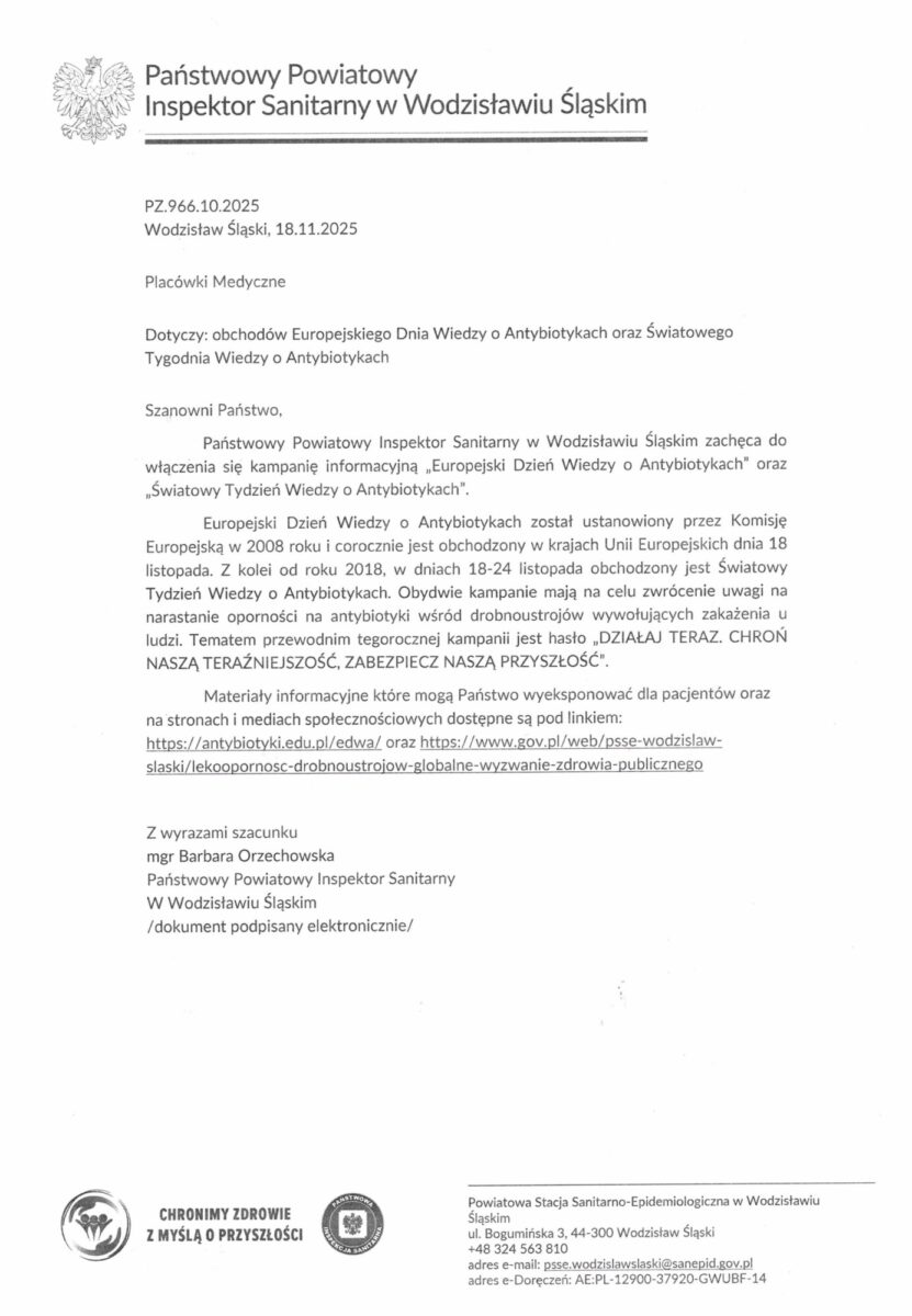 Home • Aktualności Obchody Europejskiego Dnia Wiedzy o Antybiotykach oraz Światowy Tydzień Wiedzy o Antybiotykach