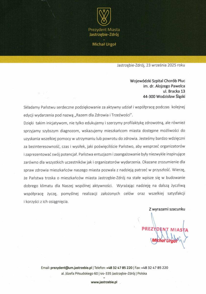 Razem dla Zdrowia i Trzeźwości - Wojewódzki Szpital Chorób Płuc im. dr. Alojzego Pawelca w Wodzisławiu Śląskim